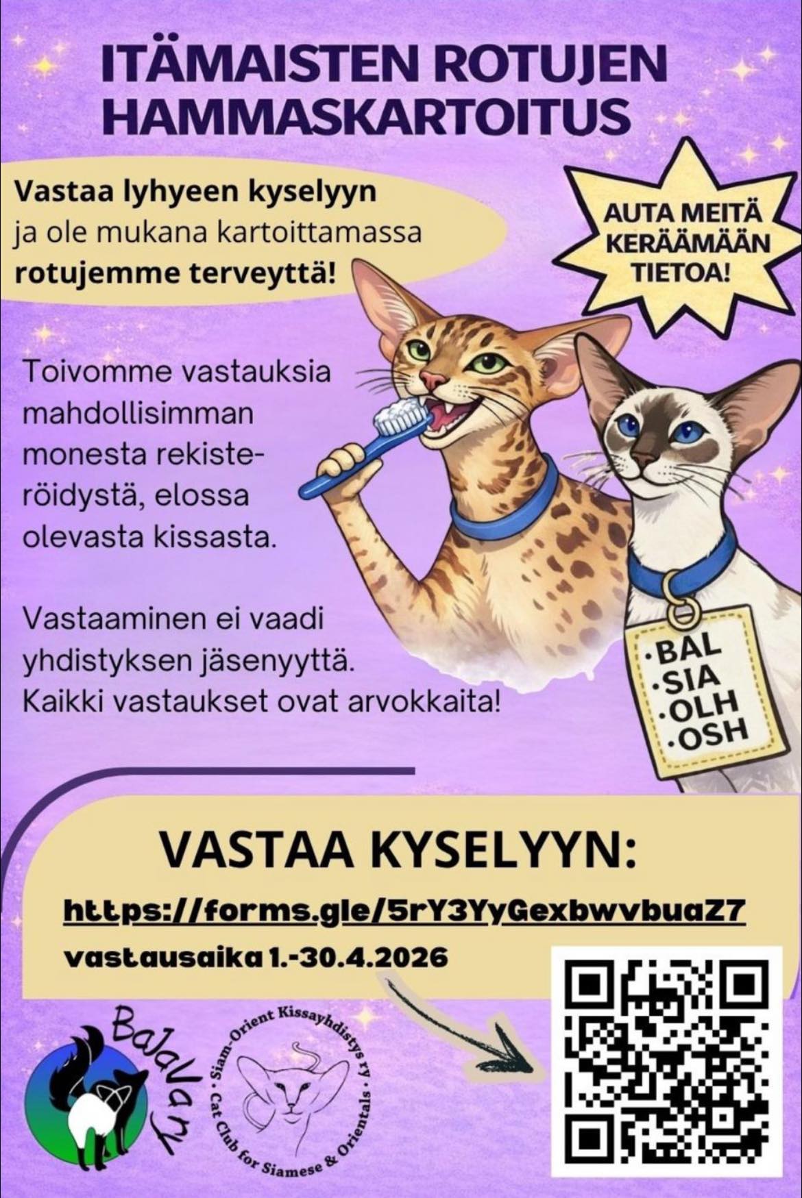 Merkitse kalenteriisi TUROKin näyttely Nousiaisissa 28.11.2026. Näyttelyssä on BREED BIS itämaisille roduille (BAL, OLH, OSH ja SIA).